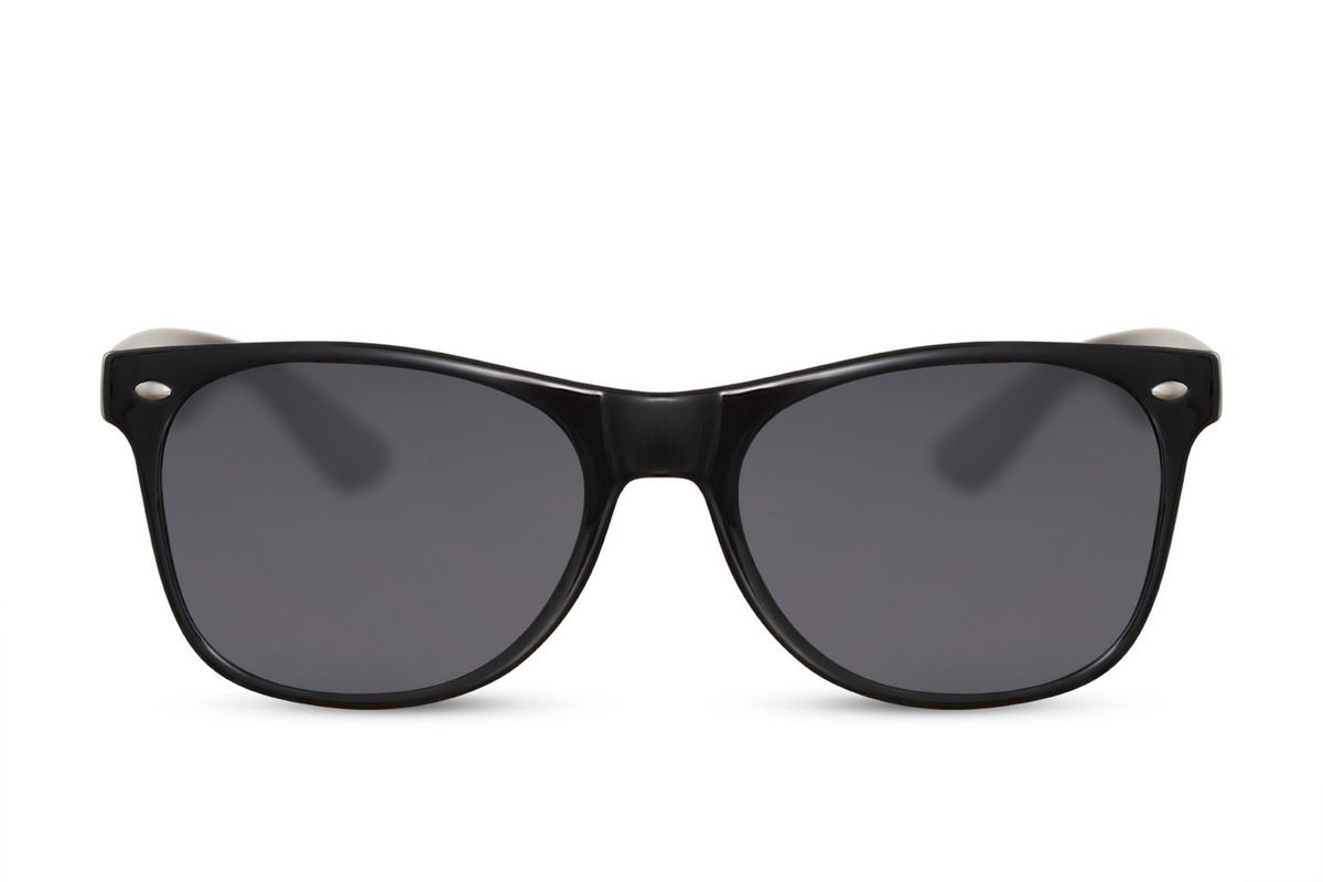 Juodo korpuso ir juodos spalvos lęšių akiniai nuo saulės, tinkantys tieks vyrams, tiek ir moterims. Stilingi akiniai ir būtiniausia apsauga nuo UV spindulių.