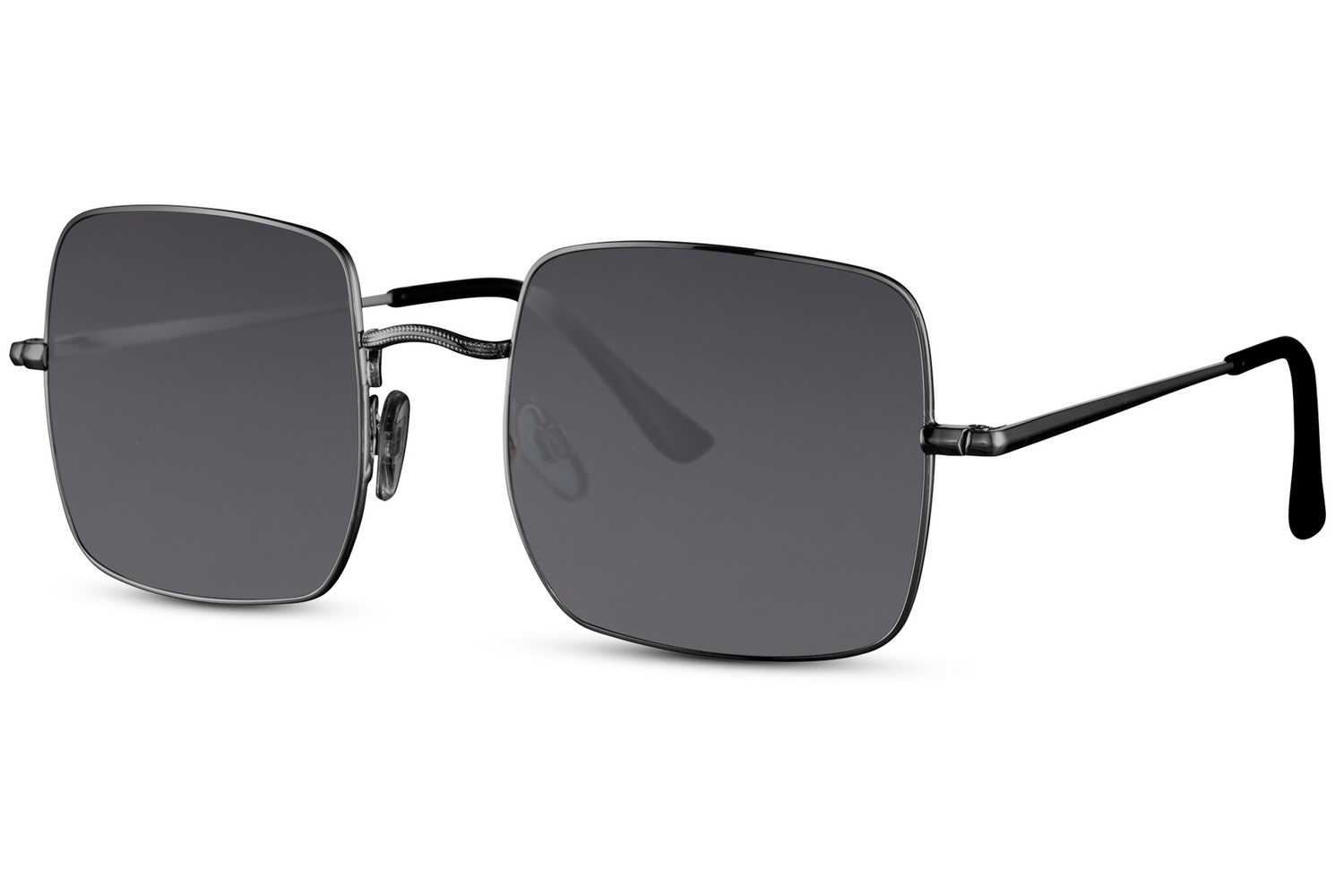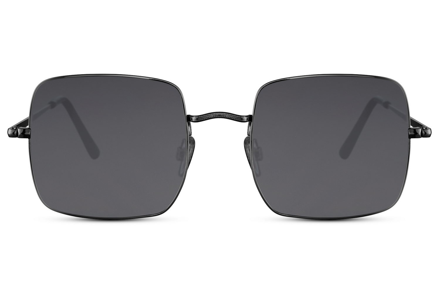 Kvadratinės formos juodų lęšių moteriški akiniai nuo saulės su UV apsauga.