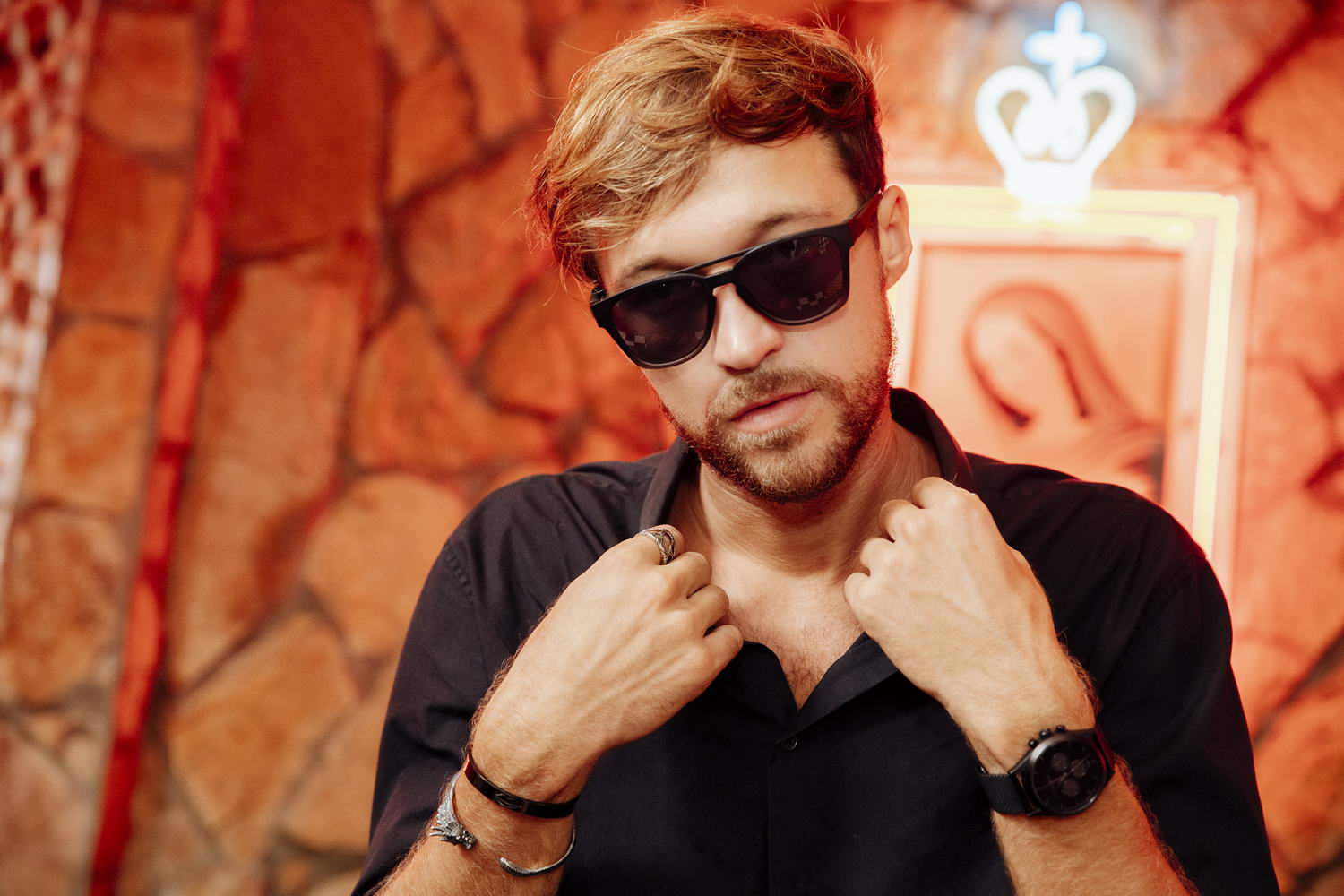 Kokybiški vyriški juodos spalvos lęšių akiniai nuo saulės. Stilingi akiniai ir būtiniausia apsauga nuo UV spindulių.