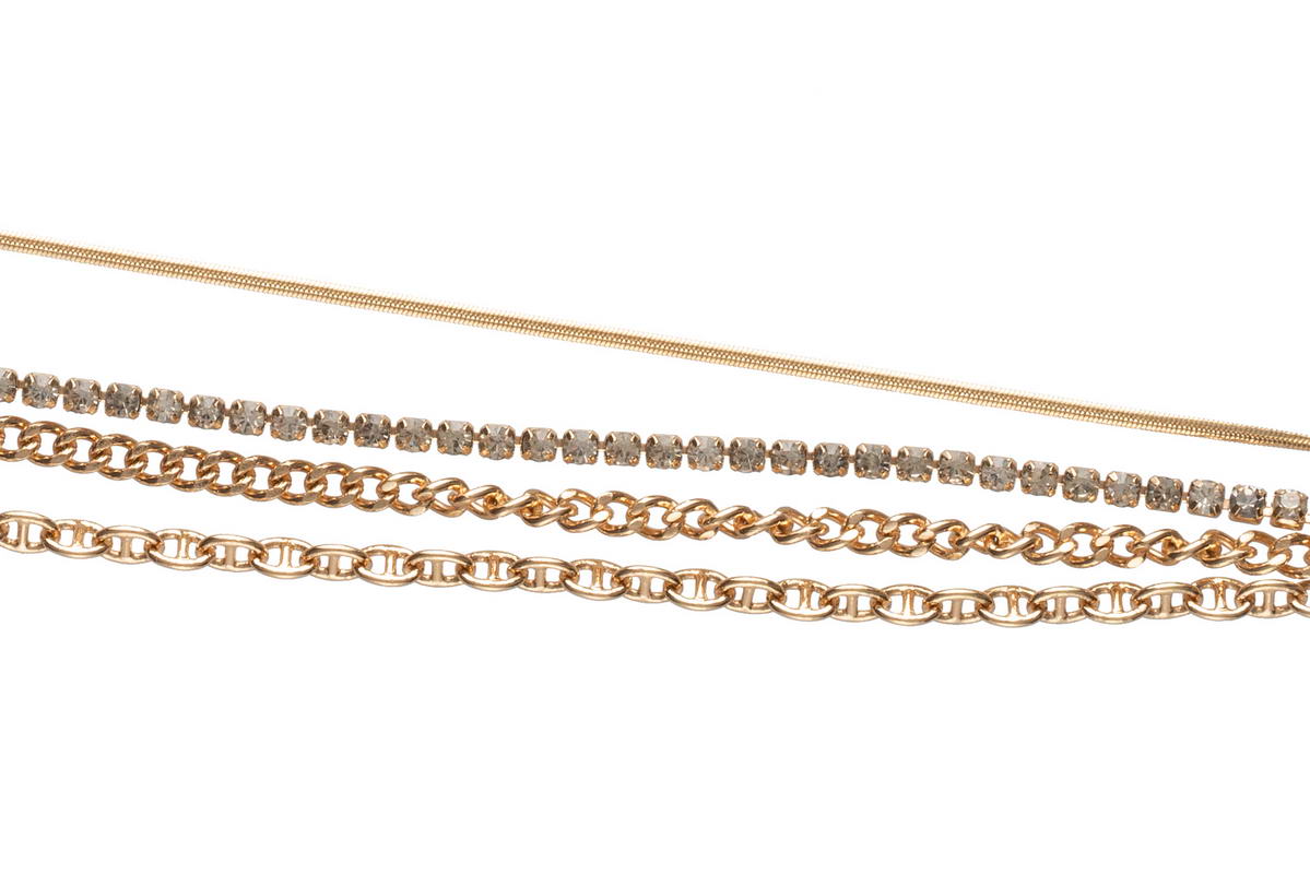 4 dalių auksinės spalvos grandinėlė akiniams. Puikiai tinka prie akinių auksinės spalvos rėmeliais. Svoris – 50 gramų.