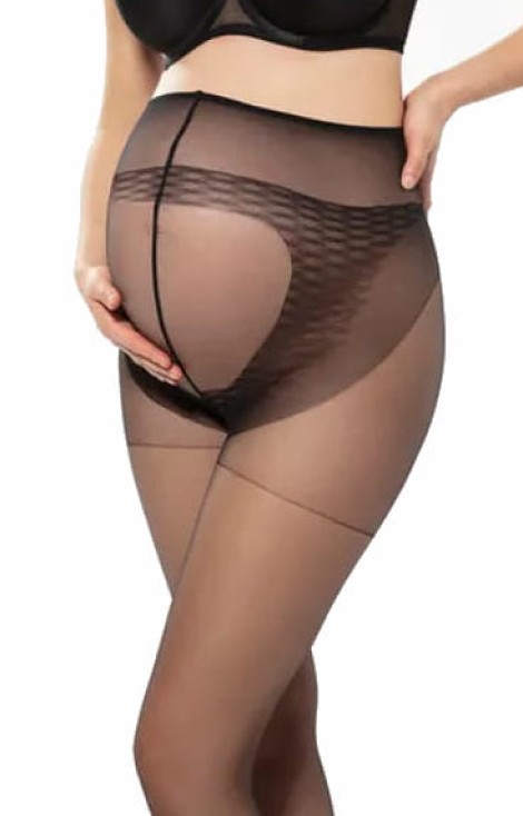 Moteriškos 20 denų storio pėdkelnės nėščiajai – juodos spalvos. Unikalus pėdkelnių dizainas prilaiko nėščiosios pilvuką ir sumažina stuburui tenkančią apkrovą. Sudėtis: 91% poliamidas, 9% elastanas.