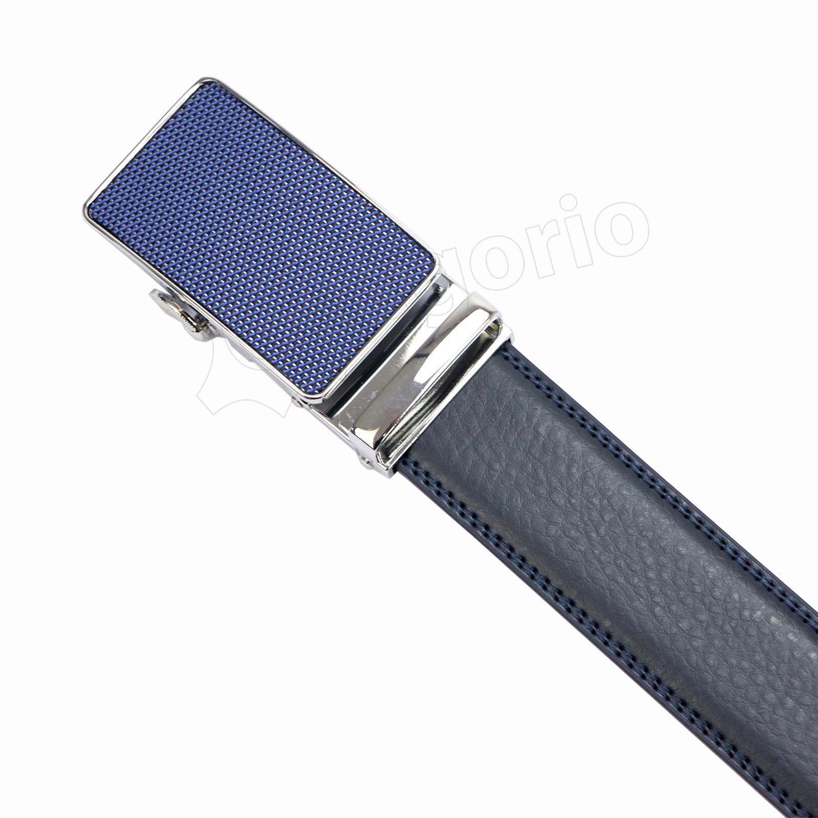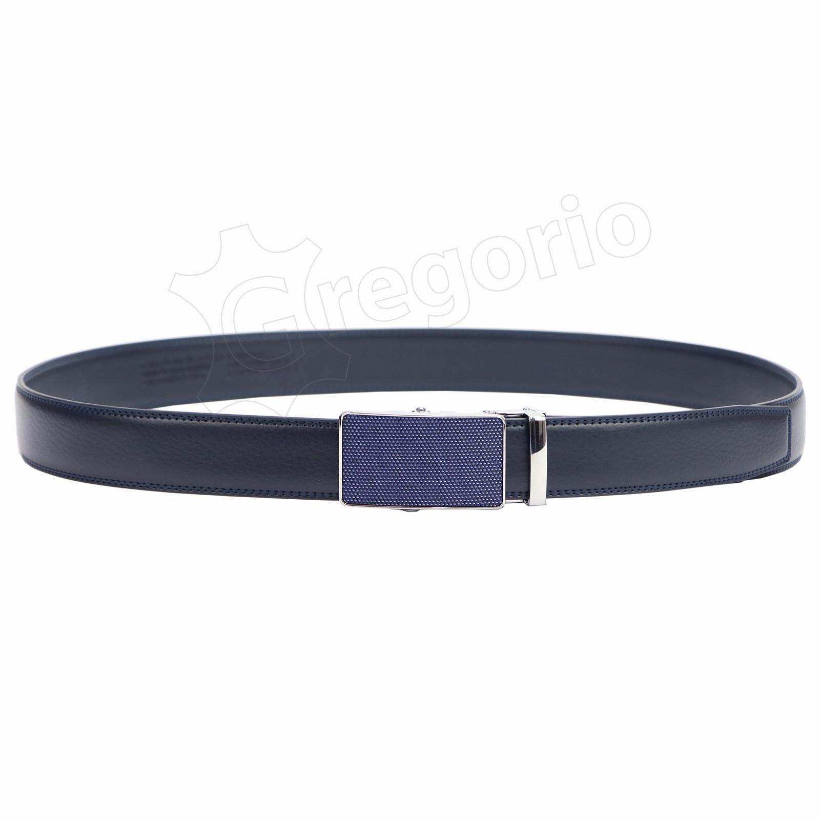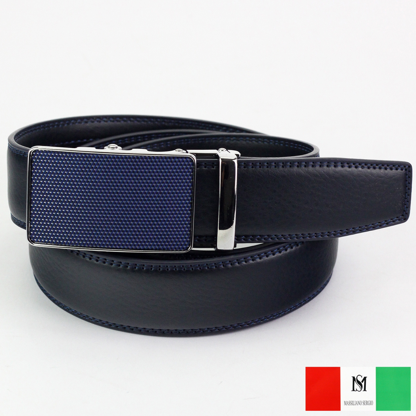 Vyriškas tamsiai mėlynos spalvos MassiLiano Sergio odinis diržas su išskirtinio dizaino sagtimi.