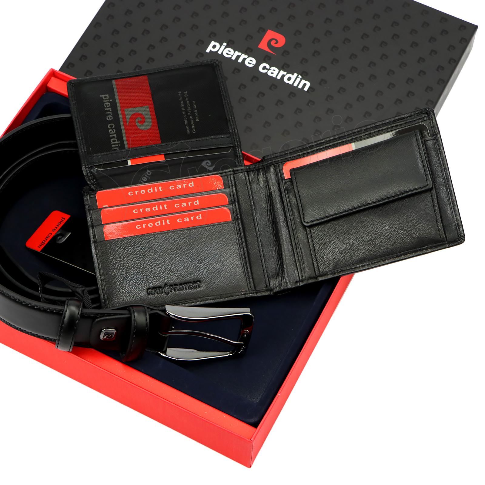 Stilingas Pierre Cardin firmos odinis rinkinys vyrui. Rinkinį sudaro klasikinis diržas (135cm ilgio) ir piniginė. Rinkinys parduodamas dėžutėje.