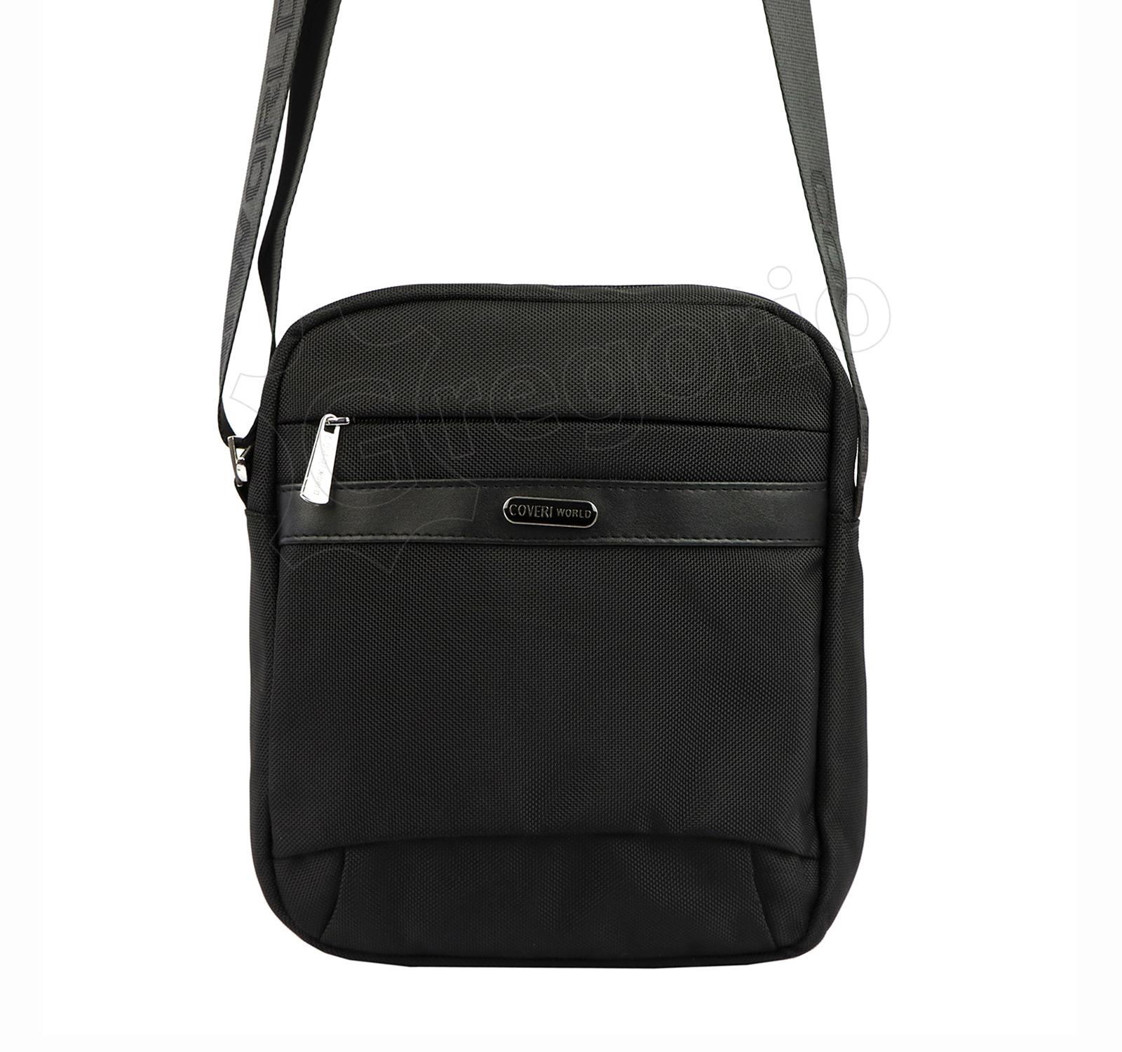 Juodos spalvos vyriška rankinė per petį. Reguliuojamo ilgio dirželis. 4 užtrauktukais užsegami skyriai. Vienas pagrindinis, du išorėje ir papildomas viduje.