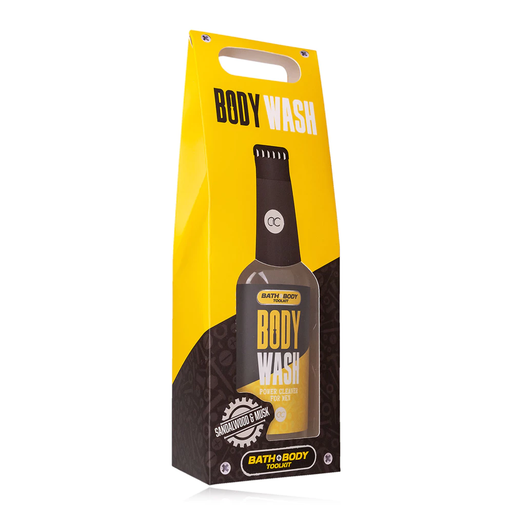 Šmaikščiai gėrimo butelyje supakuotas vyriškas dušo gelis (360 ml). Šmaikšti dovana įvairiomis progomis. Santalo medžio ir muskuso kvapo.