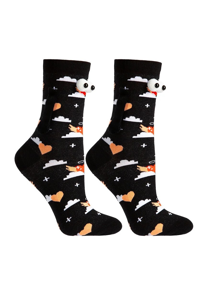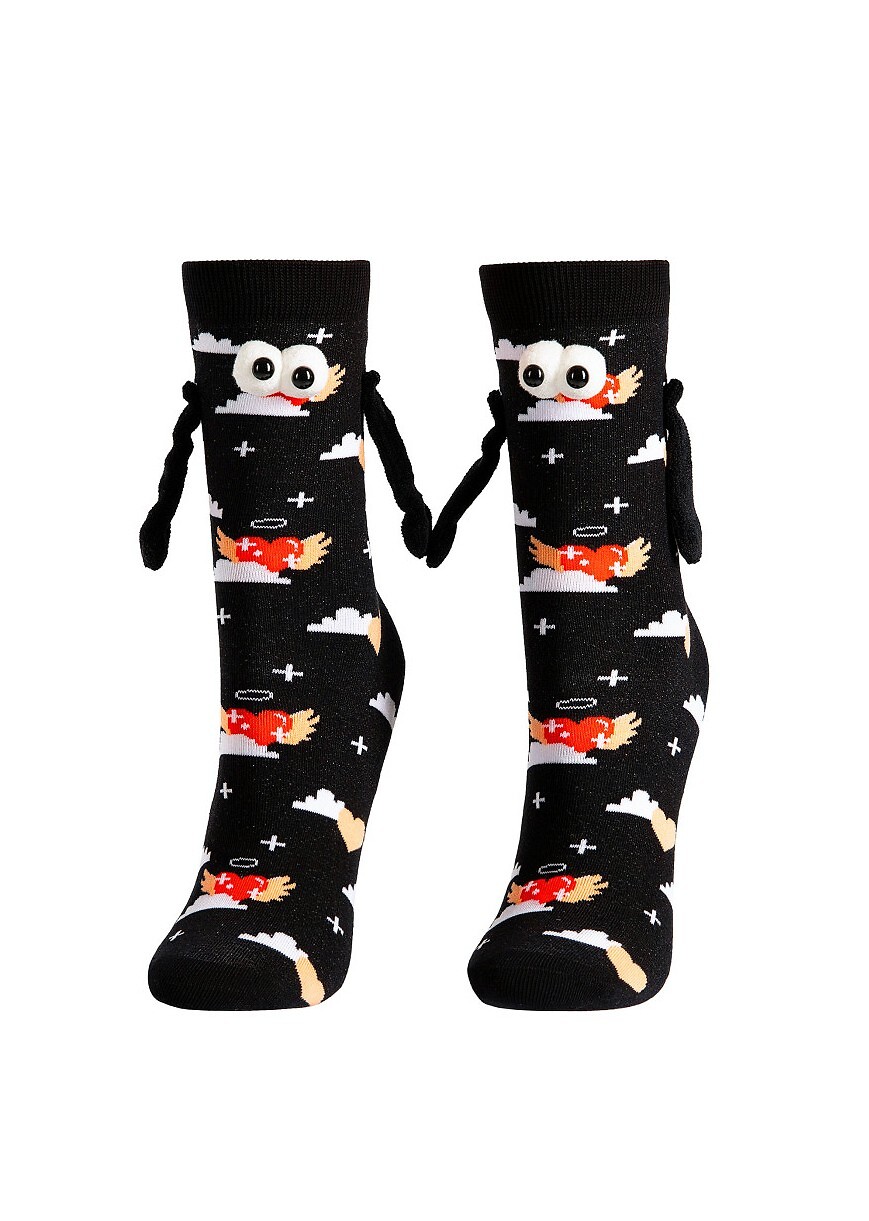 Šmaikščios kojinės su magnetinėmis rankomis. Kojinėms priartėjus vienai prie kitos – rankos susijungia. Puiki dovana Valentino dienos proga. Sudėtis: 69% medvilnė, 28% poliamidas, 3% elastanas. Kilmės šalis: Lenkija.