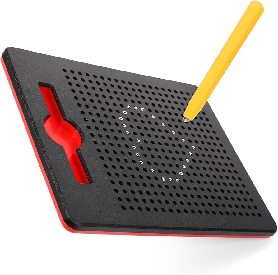 Lavinamoji magnetinė piešimo lenta su rutuliukais. Vaikas gali pats pasirinkti – ar piešti pasitelkiant fantaziją, ar piešti pagal vieną iš dešimties pateiktų kortelių. Piešiama su specialiu rašikliu (pridedamas prie lentos), kuriuo vedant per lentą prie šios paviršiaus pritraukiami rutuliukai, kurie ir sukuria piešinį. Išmatavimai: 21,5x17x1cm